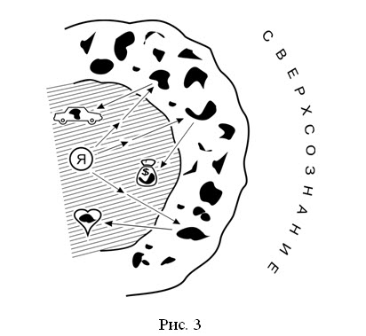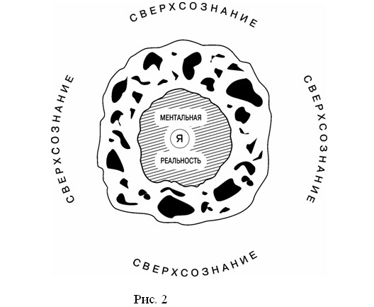 Посмотрим на рисунок 2. Если у нас хватило наглости назваться творцами вселенной, то будем последовательными до конца. И утвердим свое «Я» не над коварным подсознанием, и не под грозно нависающим сверхсознанием, а именно что в основе, в самом центре своего мироздания.